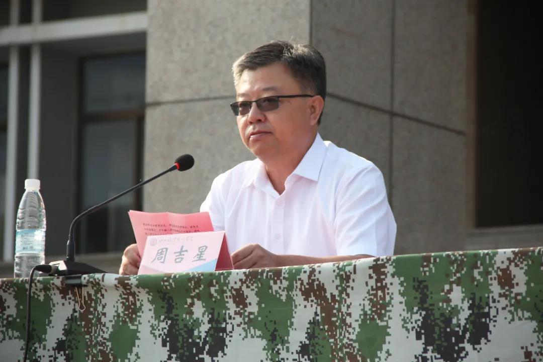 9月2日上午,suncitygroup太阳新城2021级新生军训动员大会于寰球广场举行。校党委委员、工会主席周爱红,校党委委员、副院长郭士武,校党委委员、办公室主任、宣传部部长周吉星,95920部队副政委戴春木等人出席大会。相关部门负责人员参加会议。周吉星主持。