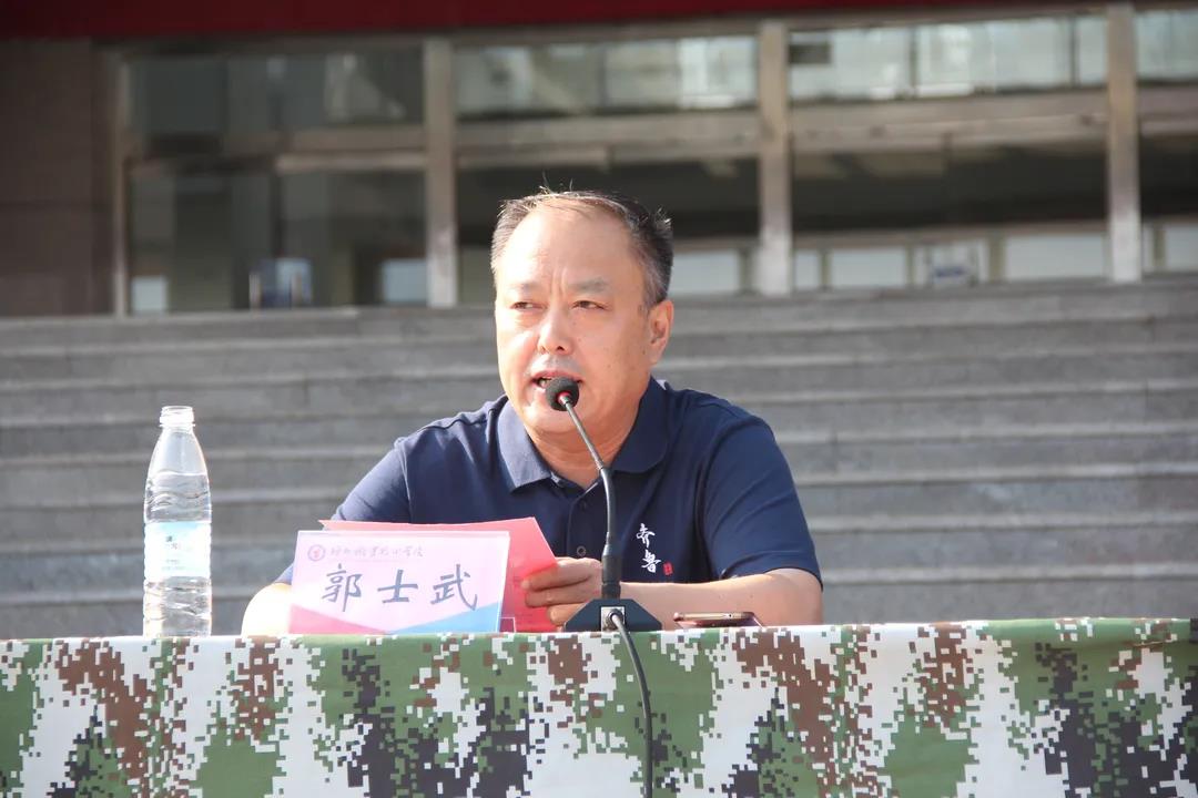 郭士武代表学校向95920部队对我校军事教育工作的支持表示敬意和感谢。他指出,自2020年新冠肺炎疫情出现以来,学校严格落实防疫要求,统筹疫情防控和新学期开学各项工作,切实保障全校师生的生命安全和身体健康。2021级全体新生要端正态度、刻苦训练,圆满完成军训任务。要增强国防信念,树立国家安全意识,以实现中华民族伟大复兴为己任,不负时代,不负韶华,不负党和人民的殷切希望,用奋斗的青春开启人生新征程,用拼搏的激情谱写时代新乐章。