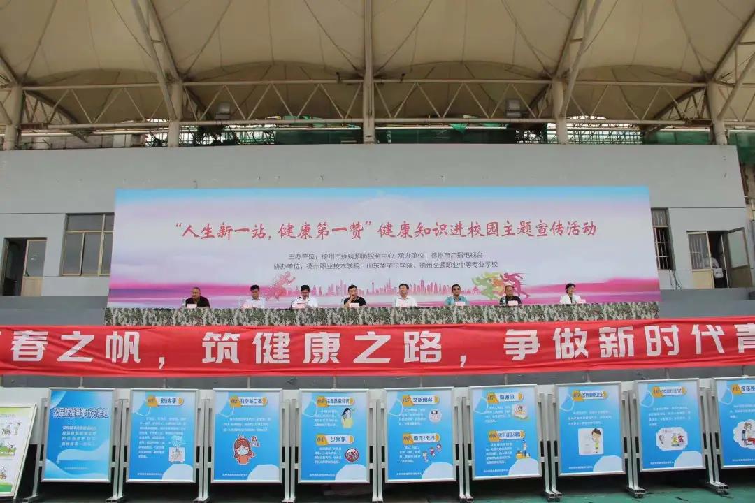 9月4日,由德州市疾病预防控制中心举办,德州市广播台承办,suncitygroup太阳新城、山东华宇工学院、德州交通职业中等院校共同协办的“人生第一站,健康第一赞”健康知识进校园主题宣传活动启动仪式在suncitygroup太阳新城顺利举行。
