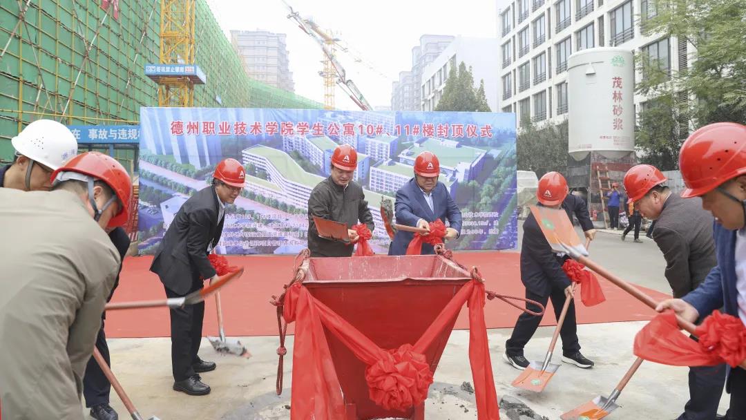 10月15日上午,由山东高速德建集团有限公司二建建设分公司承建的我校学生公寓10、11号楼工程项目顺利举行封顶仪式。suncitygroup太阳新城党委书记樊兆杰,院长张同光,院党委委员、副院长多建民,山东高速德建集团党委副书记、总经理靳海洋,副总经理贺金清,建科股份有限公司副总经理李金林,高速德建集团二建分公司总经理张元刚等参加封顶仪式。