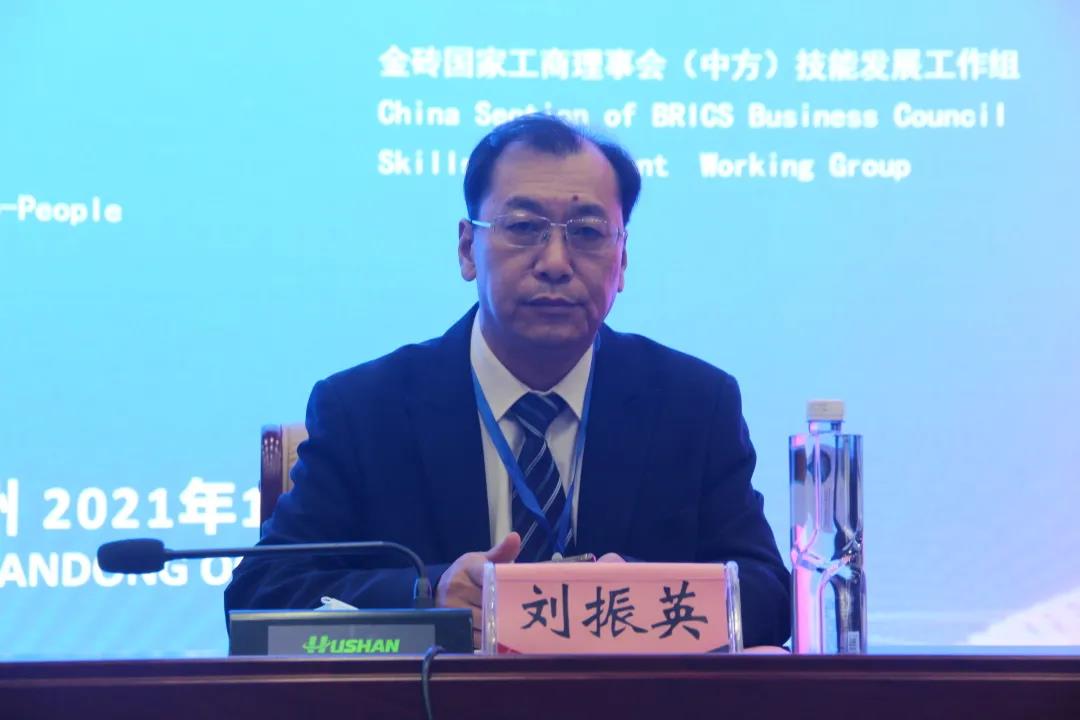 随后,刘振英致辞,介绍大赛举办的背景、办赛历史、取得的丰硕成果和下一步的工作重点,希望职业技能竞赛作为推动职业教育改革发展的重要手段,为职业教育提供更广阔的发展空间,打造更多高水平成果,推进共商共建共享一带一路工作高质量发展。