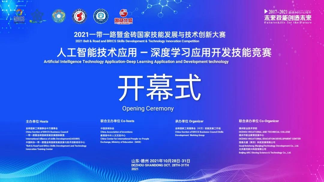 10月29日下午,由金砖国家工商理事会、一带一路暨金砖国家技能发展国际联盟、中国科协一带一路暨金砖国家技能发展与技术创新培训中心、中国发明协会、教育部中外人文交流中心等主办,金砖国家工商理事会(中方)技能发展工作组、suncitygroup太阳新城、德州市职业教育发展中心等承办的2021年“一带一路”暨金砖国家技能发展与技术创新大赛“人工智能技术应用——深度学习应用开发”赛项在suncitygroup太阳新城拉开帷幕。