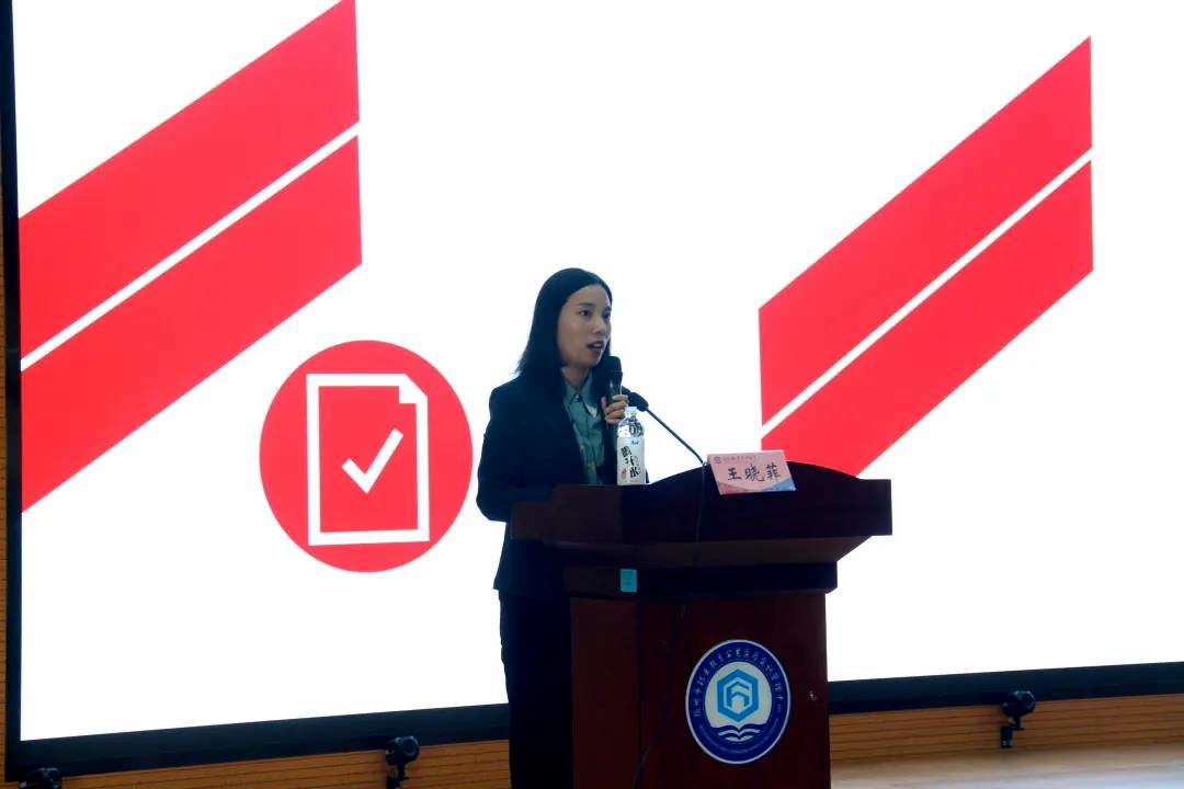 为大力弘扬劳动光荣、技能宝贵的时代风尚,宣传新时代的工匠精神、劳模精神,11月24日下午,我校在公共实训中心多功能厅举行“工匠精神进校园”宣讲活动。校党委委员、副院长殷淑英,校党委委员、组织部部长孟繁营出席活动,活动邀请全国劳动模范、全国技术能手、中华技能大奖获得者德州恒丰集团高级技师王晓菲,大家作“手舞银丝绘彩梦青春圆梦谱华章”的专题报告。近两年新近青年教师及各系部师生代表100余人参加了此次活动。
