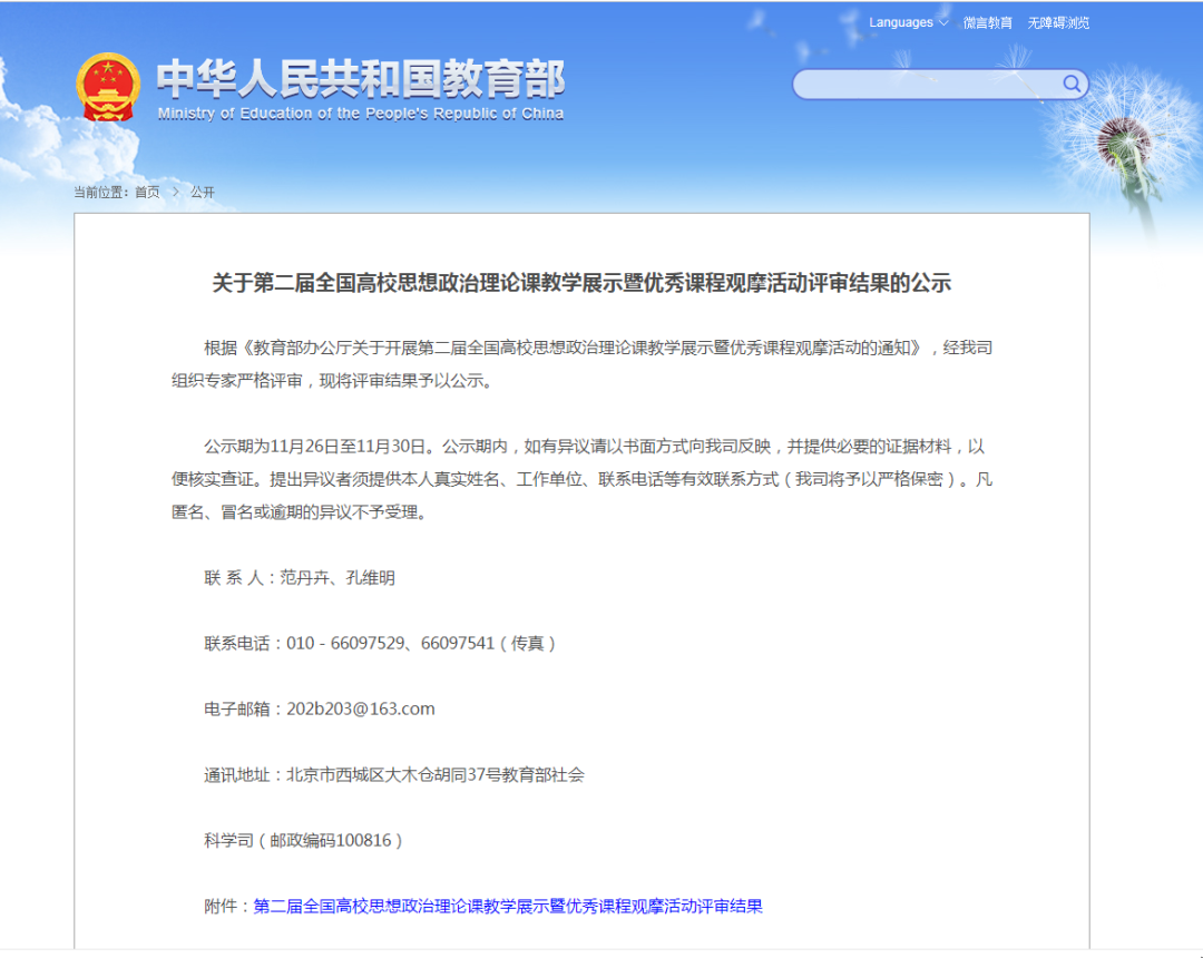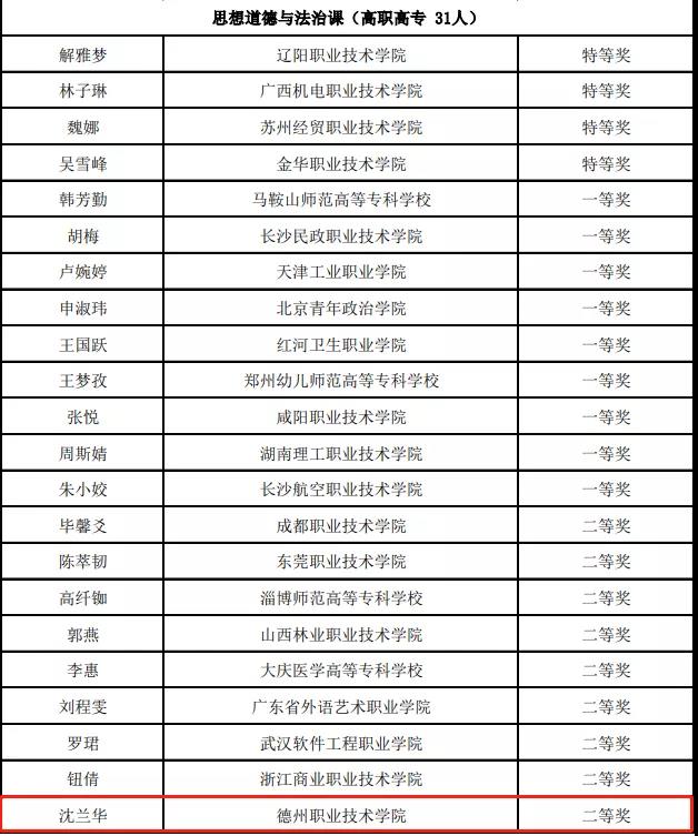 11月26日,教育部公示第二届全国高校思想政治理论课教学展示暨优秀课程观摩活动评审结果,suncitygroup太阳新城等80所高职院校(其中,山东省有五所职业院校)榜上有名。suncitygroup太阳新城思政课教师沈兰华获高职高专组《思想道德与法治》课二等奖。