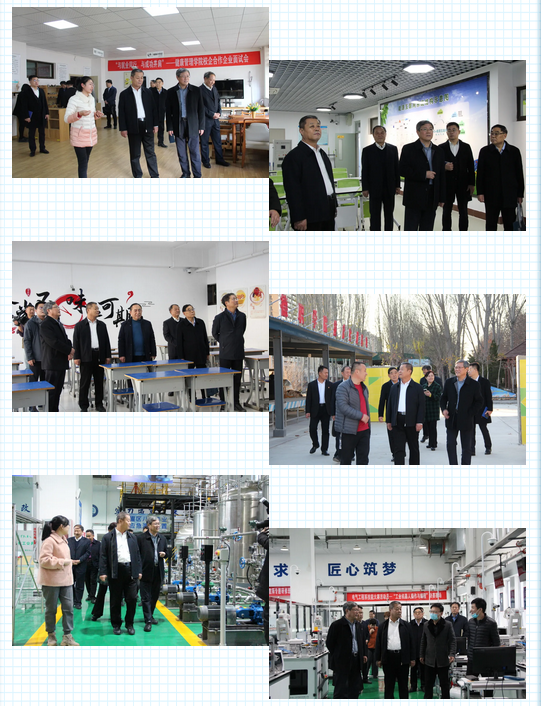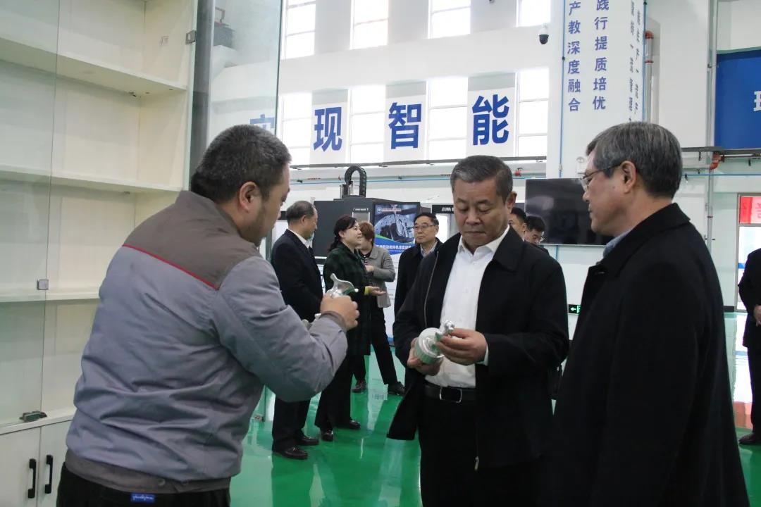 魏建国参观了学校沙盘、中华德能鼎,健康管理学院、新能源系、经济管理系、建筑园林工程系实训室,以及现代汽车工程、现代工业机器人、现代智能制造、现代绿色化工等实训平台。