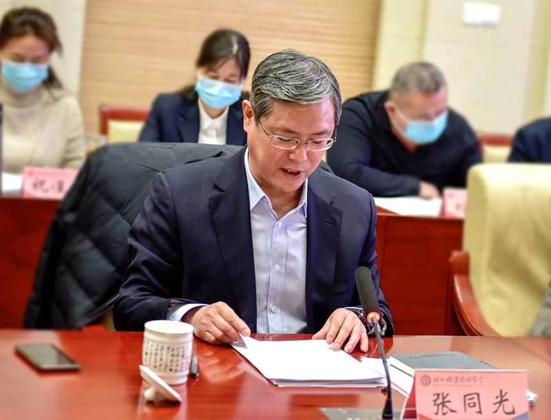 院长张同光介绍学校内部质量保证体系诊断与改进工作体系建设情况,对照两链打造与实施、质量改进螺旋提升等要求,汇报了学校、专业、课程、教师和学生层面诊改和激励保障机制实施工作情况。他表示,学校坚持“全诊改”“真诊改”“实诊改”“常诊改”原则,初步形成了具有学校特色的“理念先进,对标一流,提质培优,增值赋能”的诊改特色质量文化,质量立校理念深入人心,质量保证体系基本建立,诊改工作达到了预期成果。