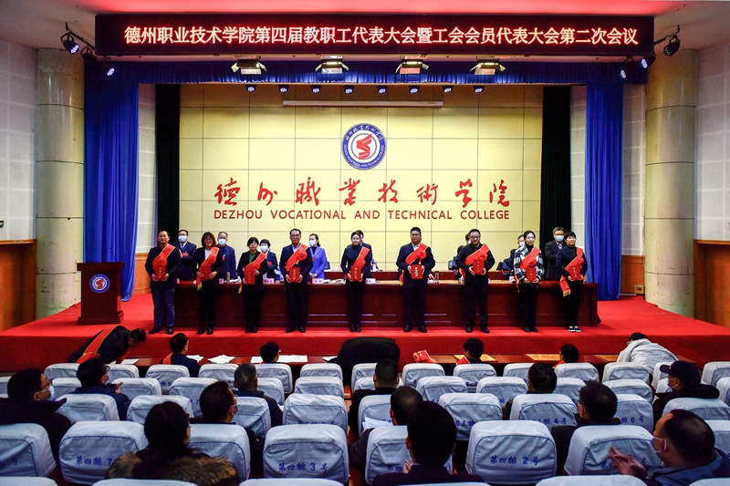 樊兆杰主持会议。他代表校党委,对广大师生在2021年坚持党的全面领导,紧紧围绕“提质培优、增值赋能”主题和中心工作,以省优质校建设为主线,以扎实开展党史学习教育为动力,振奋精神,勇于攻坚,取得丰硕成果,推动学校高质量发展,给予充分肯定。他分析了职业教育和学校发展面临的形势,提出并解读了2022年“3466”工作思路,强调要大力推进校园党建文化、德能特色文化、德州大运河文化三项文化建设,积极创建省优质校、国家“双高校”、职教本科专业、国家示范职教集团等四项品牌,建设二期工程项目等六项基建工程,完善科研与应用技术服务体系和建设德州市物流数据中心、德州社区干部学院、大德智库、太阳新城电商直播研究中心、德州心理健康教育中心等六项社会服务平台,以大项目带动学校核心竞争力、文化软实力、办学影响力全面提升,以优异成绩喜迎党的二十大胜利召开。
