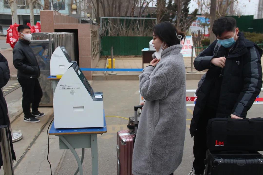 牢记父母的深情期待,胸怀职教报国理想,怀着对新学期美好大学生活的憧憬,同学们早早地到达学校生活区门口,佩戴口罩,拖着行李,有序进入专用通道,进行红外线测温。体温监测合格后,安保人员对返校学生的行李进行全面消毒,为学生安全进入校园,拉好最后一道防线。