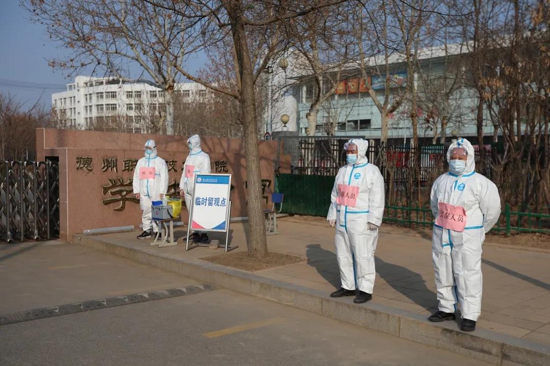 学校疫情防控工作领导小组下设的综合协调组、学生工作组、后勤服务组、留观转诊组、安全保卫组相关人员,在学校生活区大门口、第二食堂广场和8号宿舍楼参加演练。
