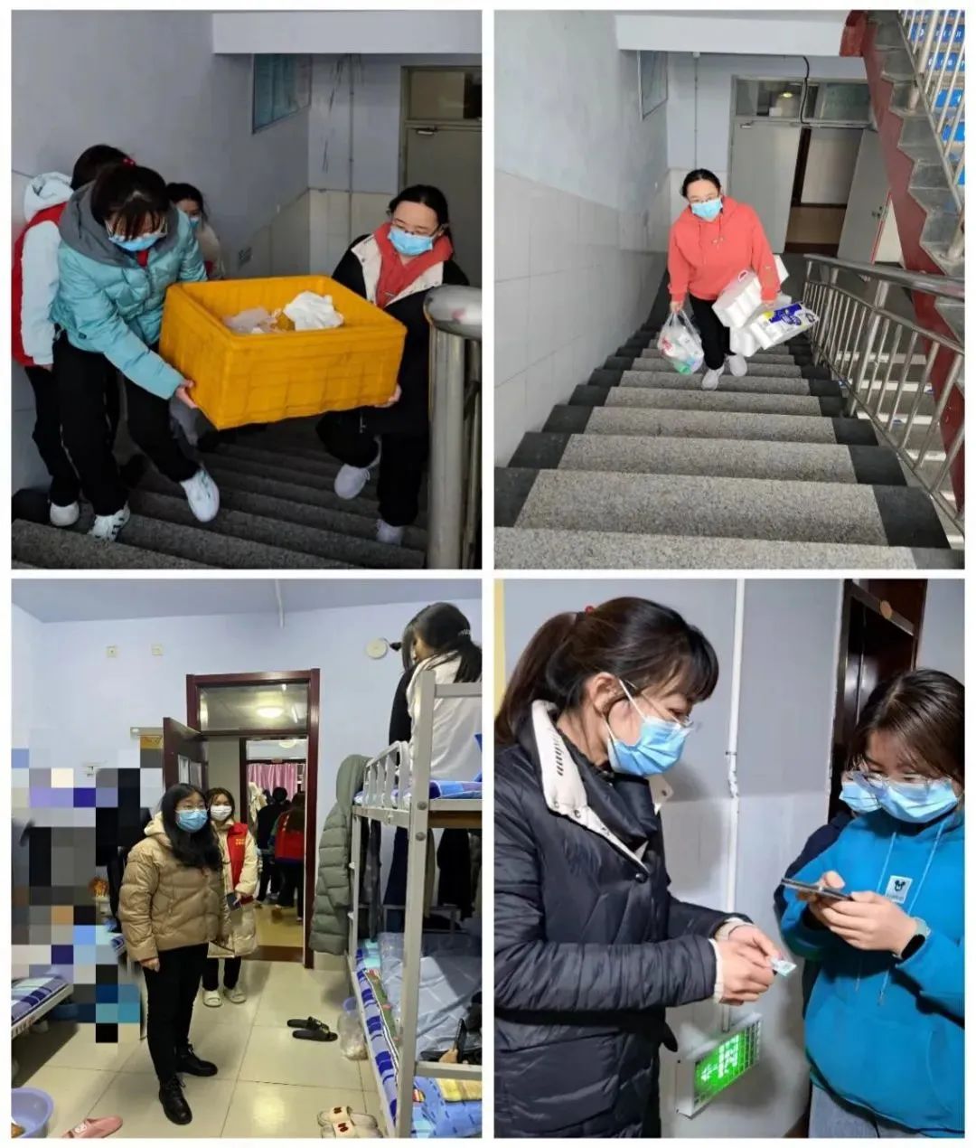 为了让同学们的学习生活环境整洁卫生,她们组织志愿者清理宿舍垃圾,分发消毒产品,督促同学们通风消毒每天晚上楼门关闭后,她们逐个宿舍进行走访,关心同学们的日常起居,调查同学们的需求,传达学院疫情防控精神,关注学生心理思想状况,确保同学们在学校的生活学习得到保障。