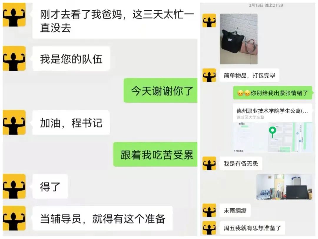 3月13日是周日,依然是加班忙碌的一天,一连几天的疫情防控紧张形势提醒了她,下一阶段她和学生将会迎接更严峻的挑战。作为十六年的资深辅导员的她,做好了充足的心理准备,即使有再多的不舍和困难,也不能阻挡她与学生守护在一起的信念。