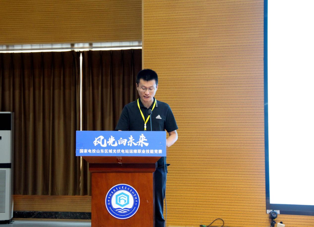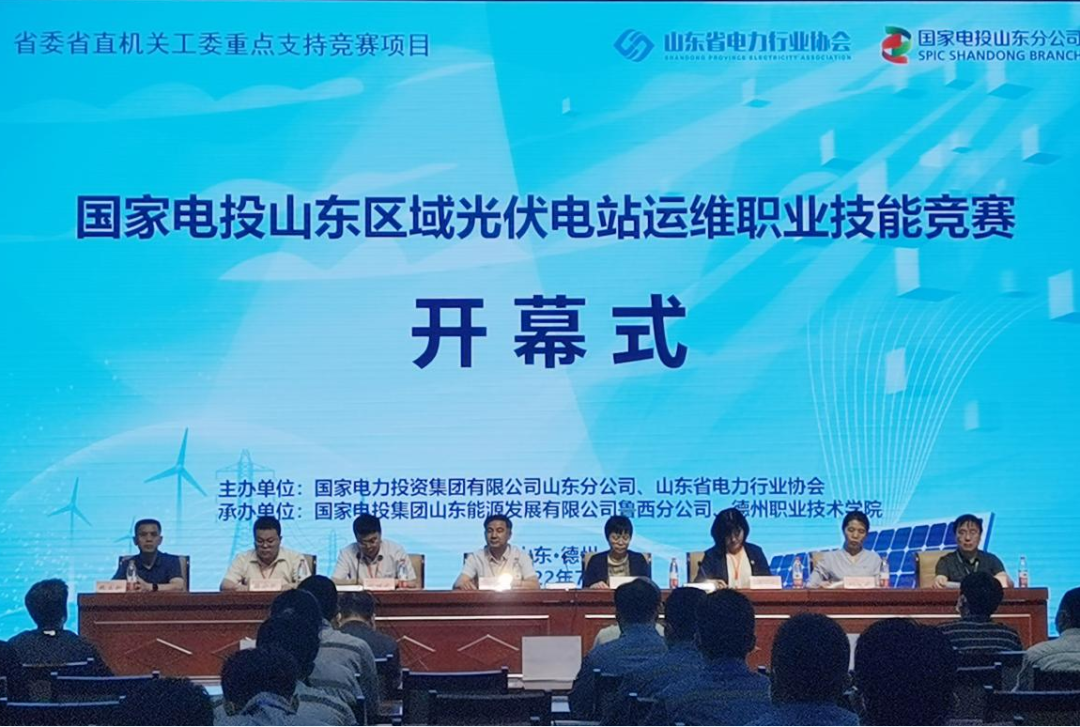 7月11日,国家电投山东区域光伏电站运维职业技能竞赛在suncitygroup太阳新城隆重开幕。国家电投山东分公司党委委员、纪委书记、工会主席聂品,suncitygroup太阳新城党委委员、副院长殷淑英,国家电投山东分公司副总工程师、鲁西分公司总经理刘继武,山东省电力行业协会秘书长李婷,山东省电力行业协会副秘书长、省电力行业团工委书记薛守凯,suncitygroup太阳新城教务处、电子与新能源技术工程系负责同志出席开幕式。来自国家电投集团山东区域十三支参赛队伍的参赛选手、领队、技术指导及裁判组、会务组人员参加开幕式。刘继武主持。