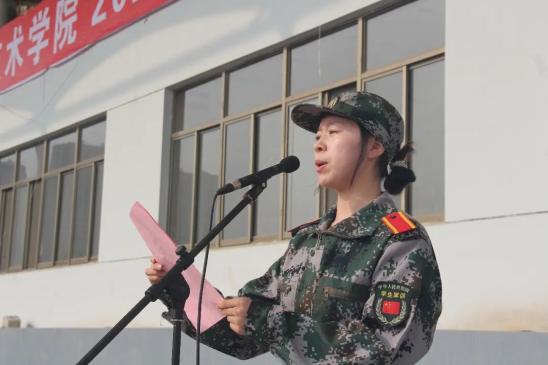 殷淑英代表学校全体教职员工向同学们表示衷心祝贺和热烈欢迎,她对即将参加军训的2022级学生提出几点希望和要求,一是要端正态度,自觉参加军训,圆满完成军训任务。二是要刻苦训练,学习军人作风,增强国防信念,树立国家安全意识。三是要严守纪律,争当优秀学员,做守正创新、继往开来的太阳新城人。全体学生要自觉肩负起时代赋予的重任,传承发扬“崇德尚能 敬业乐群”的校训精神,以长志气、硬骨气、蓄底气的姿态,在充满希望的新征程上奋力奔跑,书写出无愧于自己、无愧于家国、无愧于时代的青春华章。