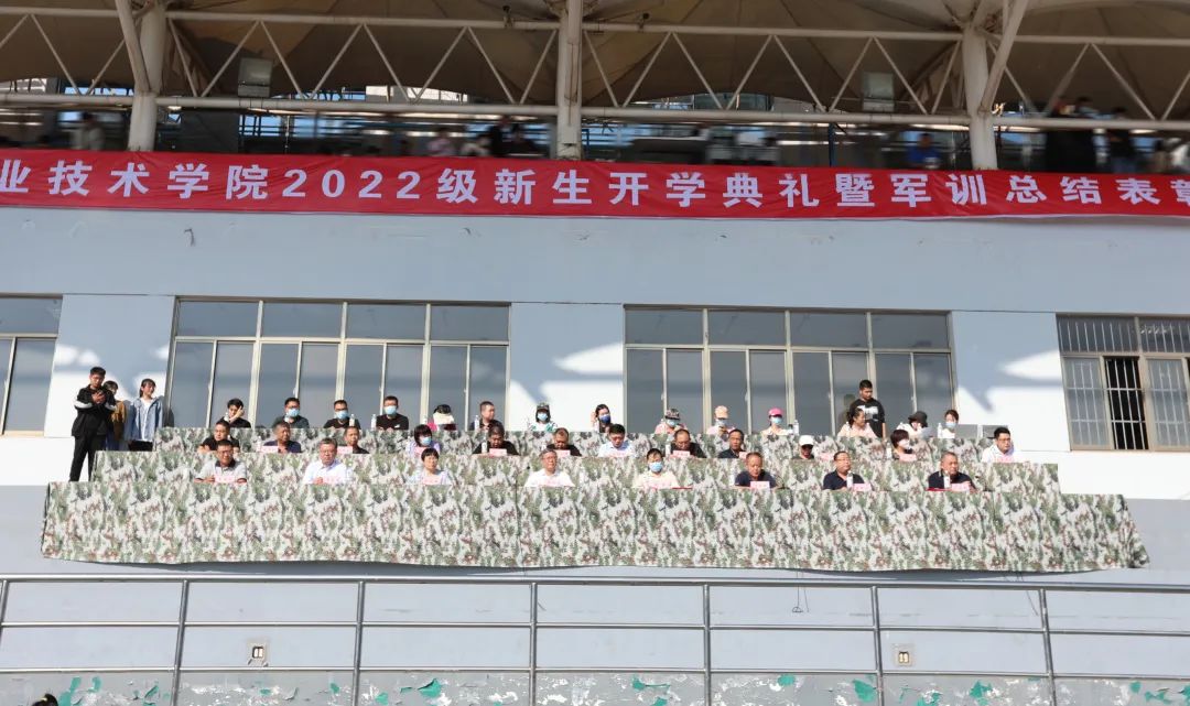 厉兵秣马日,沙场点兵时。9月28日上午,我校2022级新生开学典礼暨军训总结表彰大会在田径场举行。校领导张同光、张苹、殷淑英、周吉星、孟繁营出席大会,学校有关处室主要负责人、各系部党总支书记、学生科长、2022级辅导员、班主任,4700余名新生参加大会。校党委委员、副院长郭士武主持。
