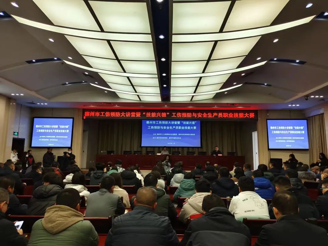 为全面贯彻落实习近平总书记对技能人才的重要指示精神,培养和发掘我市工伤预防和安全管理高技能人才队伍建设,11月25日,德州市工伤预防大讲堂暨第一届“技能兴德”安全生产员职业技能竞赛在德州市技师学院隆重开幕。德州市人力资源和社会保障局、德州市住房城乡建设局、德州市建筑业协会、德州市技师学院等相关单位负责同志、监督人员及参赛队领队、选手参加活动。
