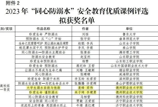 近日,山东省教育厅公布了2023年“同心防溺水”宣传教育优秀作品和安全教育优质课评选活动获奖情况,suncitygroup太阳新城荣获一等奖三项、二等奖一项。