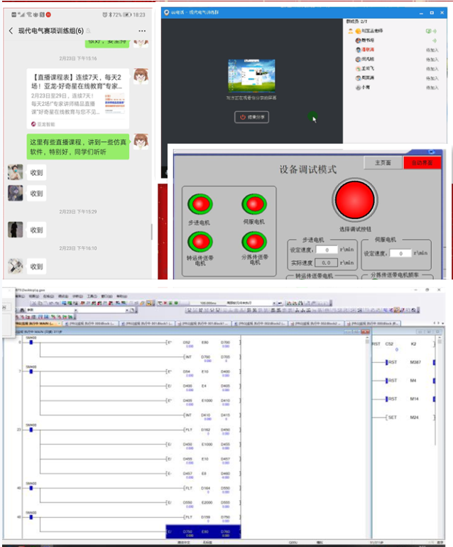 疫情期间,开学延期,但电气工程系国赛备赛选手抗疫不忘备战,练兵未曾停歇。本着“停课不停训”的原则,3个备赛项目的指导教师迅速调整原定训练计划,创新训练方法,采用立体交互式交流讲授,于2月10日恢复技能大赛训练。赛项指导教师主动联系设备供应商,为集训选手提供优质网络学习资源,多角度学习、理解竞赛内容,巩固理论知识。充分发挥现有仿真资源优势,开展技能训练,保障“手感”。建立QQ群、微信群,搭建学习交流平台,定时汇报当天学习情况及问题,教师在线答疑;定期召开视频会议,保障训练进度。目前,2月份的训练计划已基本完成。根据系大赛工作安排,各团队已明确3月份的训练目标,为返校恢复正常训练打下坚实基础。