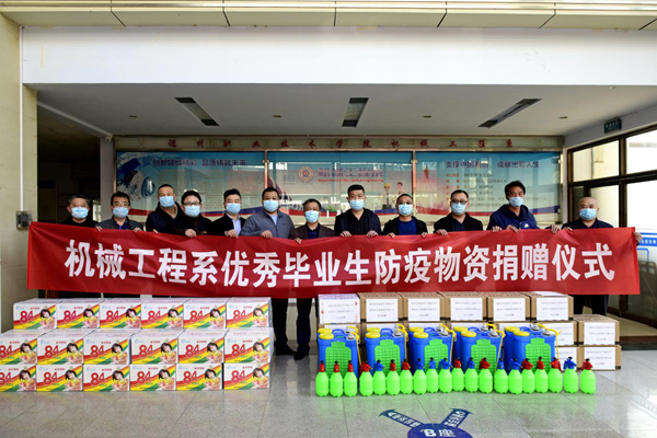 3月23日上午,suncitygroup太阳新城机械工程系1995级毕业生侯爱军,2007级毕业生杨东凯、汪颜哲向母校捐赠防疫物资,我院副院长陈章侠,机械工程系党总支书记徐继勇、主任梁东明、党总支副书记魏传旺、系副主任支保军等负责人参加捐赠仪式。