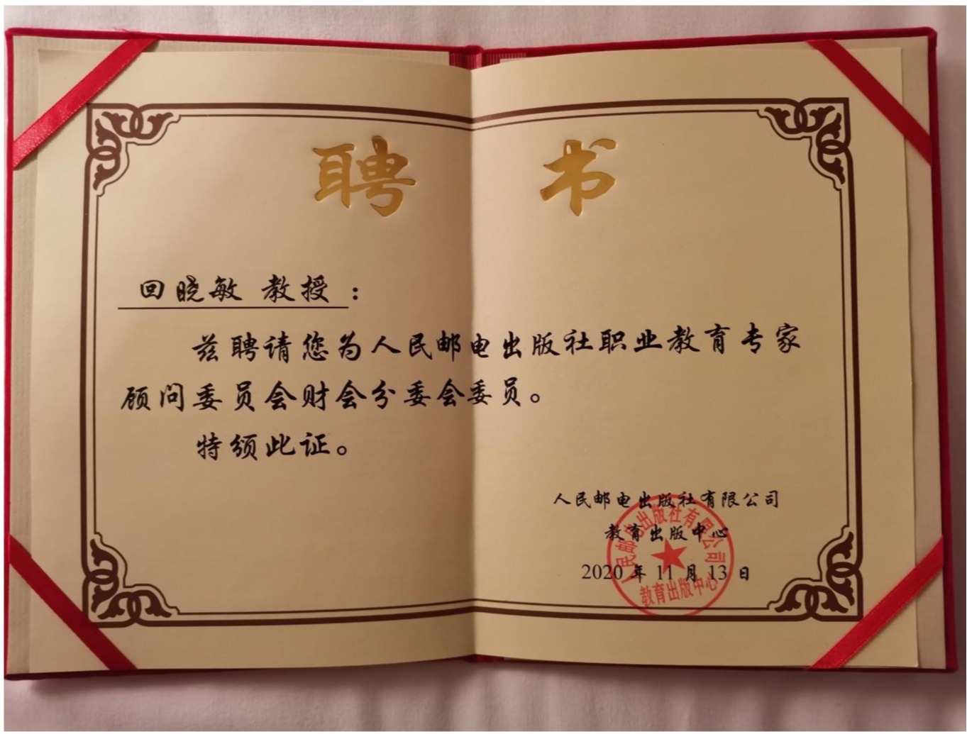11月13日,全国财会类专业名师精品教材建设项目核心专家组研讨会在北京人民邮电出版社举办,会议成立了“人民邮电出版社职业教育专家顾问委员会财会分委员会”,我校经济管理系回晓敏、刘晖两位老师被聘为“人民邮电出版社职业教育专家顾问委员会财会分委员会委员”,并被授予聘书。