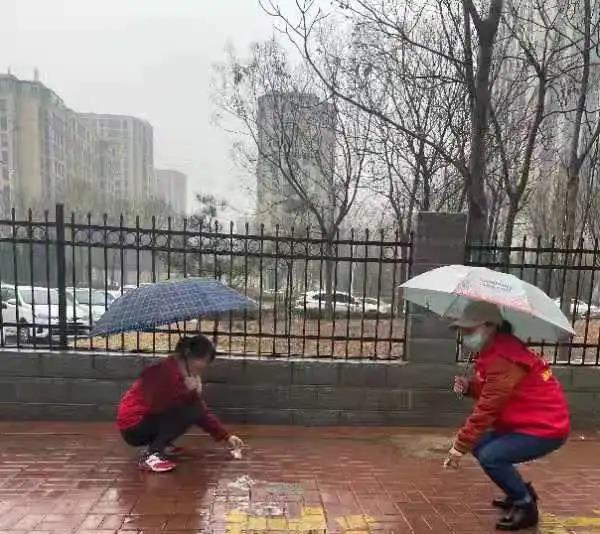 2月28日下午,suncitygroup太阳新城基础部党支部教职工志愿者在雨中,到盛世华园小区开展文明实践活动。