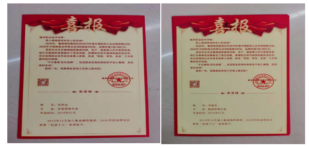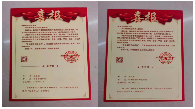 鲁南制药集团借此喜报向我系表示祝贺并致以诚挚的谢意,希望能够继续加强双方的交流合作,充分发挥校企合作双主体育人优势,打造学校、学生、企业三方共赢的良好局面。
