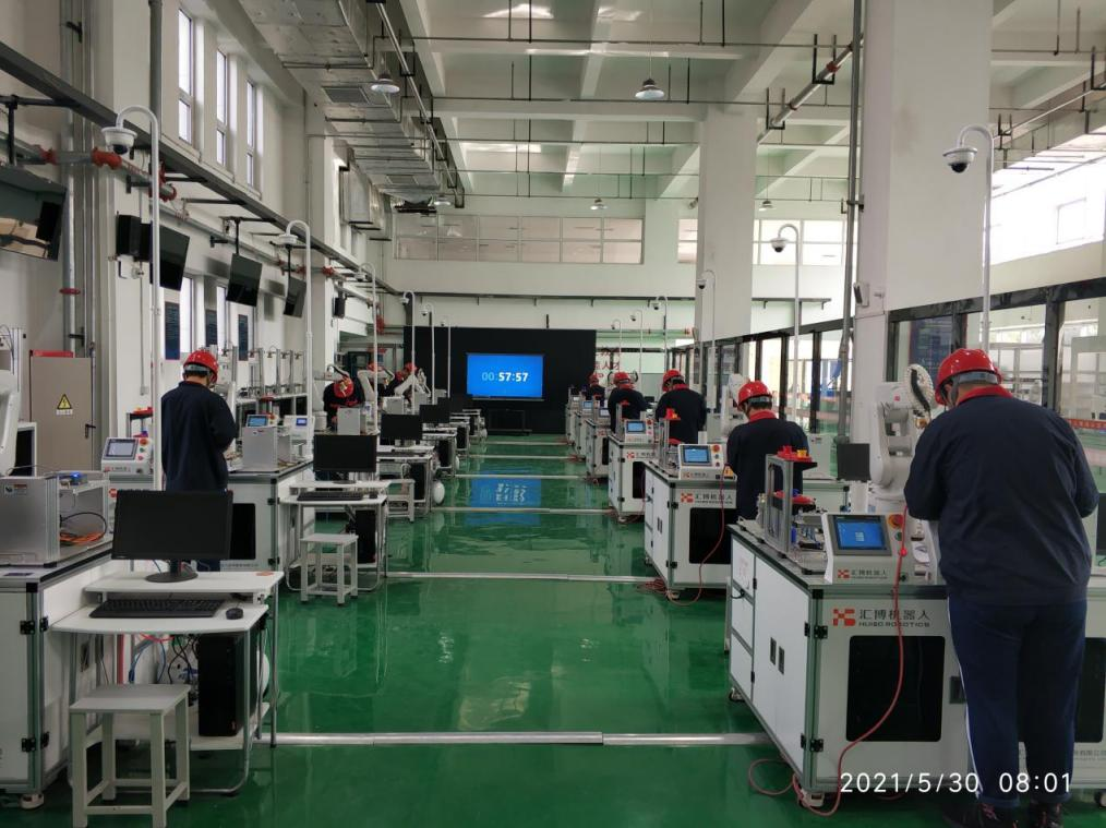 5月30日,济南电子机械工程学校的考生在我校工业机器人应用编程实训考核基地顺利完成了“1+X”工业机器人应用编程职业技能等级证书(初级)认证考核,22名考生全部通过考核,通过率100%。