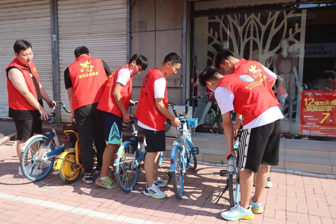 志愿者将路边随意停放的共享单车停放摆正,同学们齐心协力,使街道变得更加干净整洁。红色身影走过的地方,只留洁净与文明,在为社区提升“颜值”的同时,也为社会注入文明“内涵”。