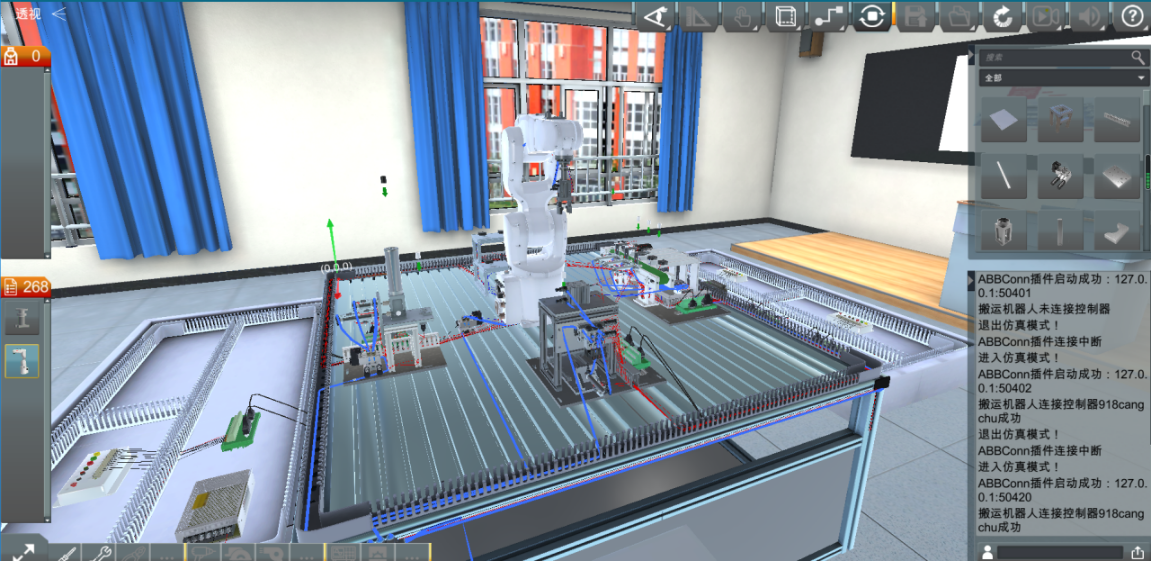 本赛项以工业生产需求与教学融合为导向,坚持行业用人、岗位需求、技术进步以及教学改革为原则,以自动化生产线和工业机器人实训设备为载体,营造虚拟的生产情景,虚实结合,运用数字孪生技术,突显虚拟仿真技术的优势,旨在考察参赛选手的器件间的线路连接、气路连接、PLC程序编写、变频器使用、机器人离线编程与仿真、整线联调仿真等能力,适用于自动化生产线安装与调试等相关课程的理论与实践教学,契合了我系机电专业相关课程的教学改革。