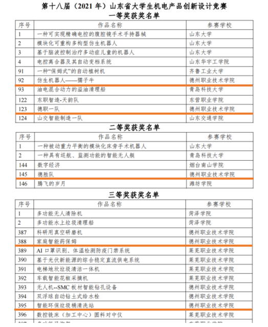第十八届(2021年)山东省大学生机电产品创新设计竞赛于2021年9月12日以线上评审方式完成第二阶段决赛,我校电气工程系共获得一等奖2项,二等奖1项,三等奖2项的好成绩。