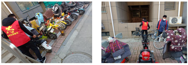 第二批志愿者们在八里庄盛世华园小区,将乱停乱放的自行车摆放在公共停车区,将摆放不规范的自行车,扶正并有序摆放,并对周边的垃圾进行清扫。尽管天气寒冷,志愿者们也丝毫没有懈怠,用自己的实际行动展示维修协会的责任与担当。