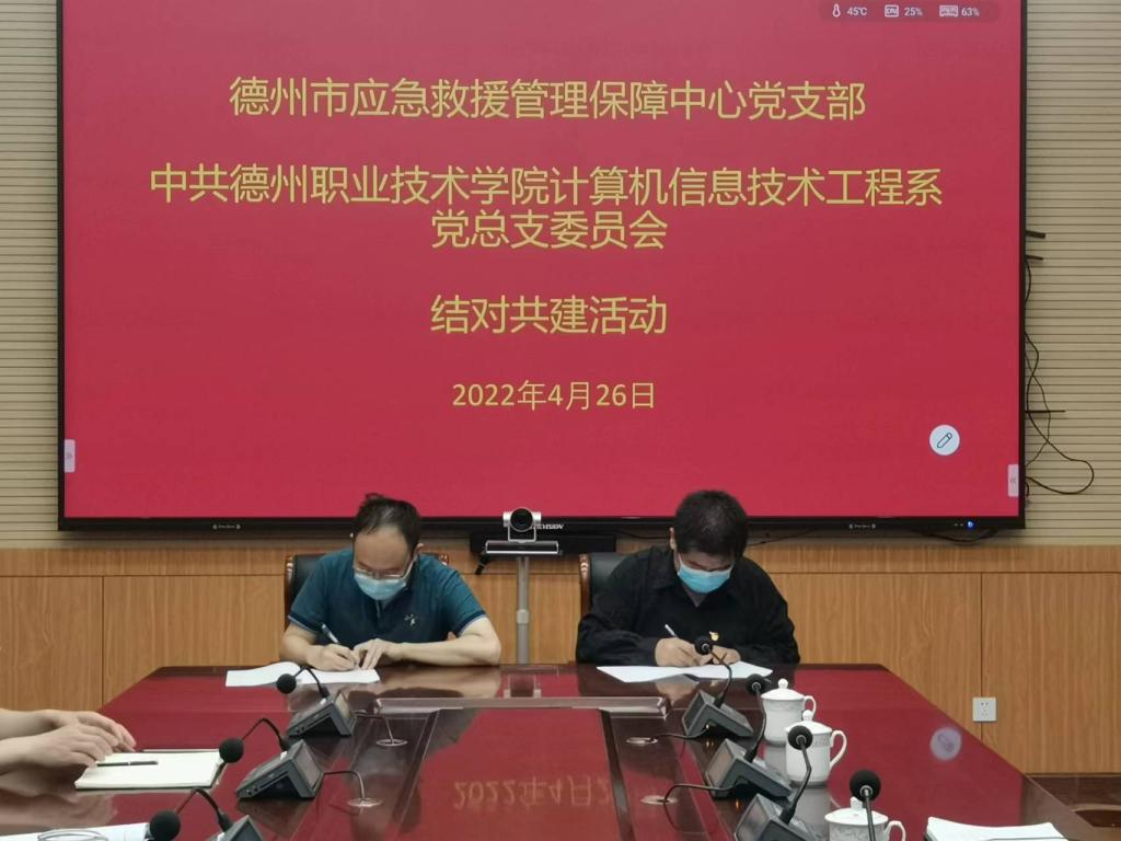 4月26日,我校计算机信息技术工程系党总支与德州市应急救援管理保障中心党支部联合开展结对共建活动。德州市应急管理局副局长张海燕、计算机系党总支负责同志、双方单位党支部负责人员和部分党员参加活动。