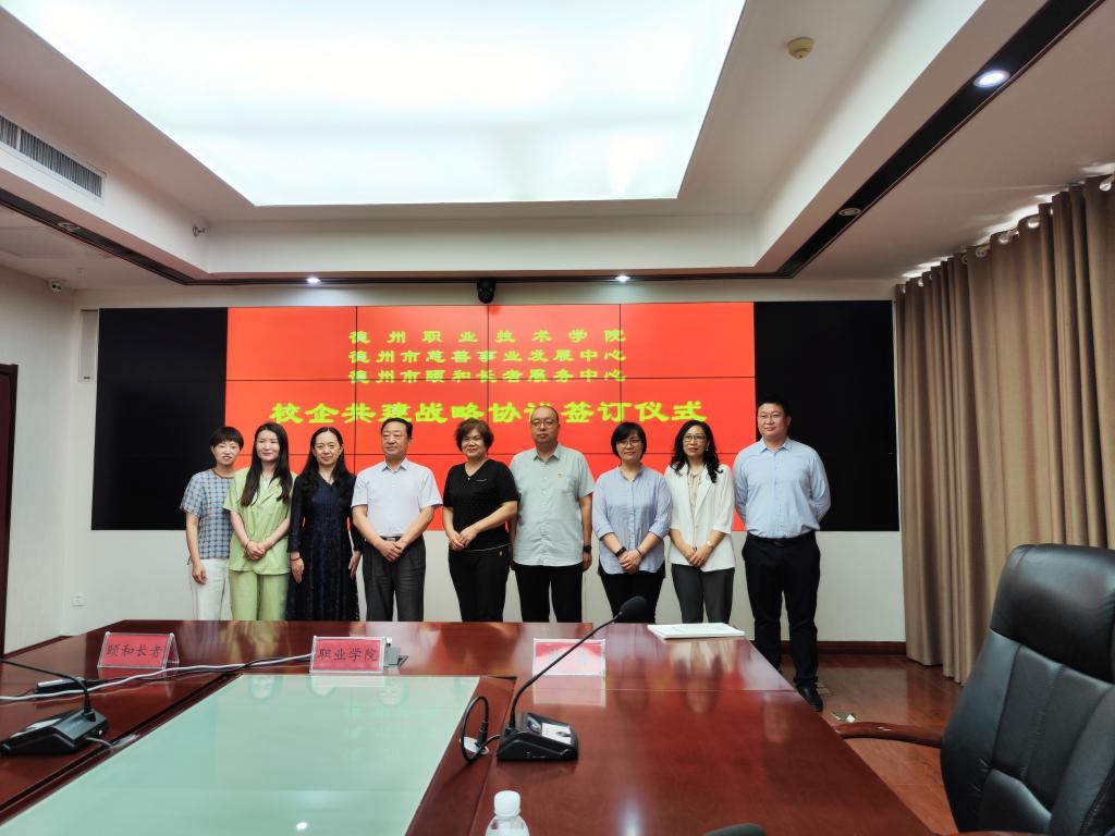 6月14日上午,suncitygroup太阳新城、德州市慈善事业发展中心、德州市颐和长者服务中心战略合作签约仪式在民政事业园七楼会议室举行。校党委委员、工会主席周爱红,民政局副局长张宝明、德州市慈善事业发展中心主任焦焱、德州市颐和长者服务中心主任张爱霜及健康管理学院相关人员参加了签约仪式。