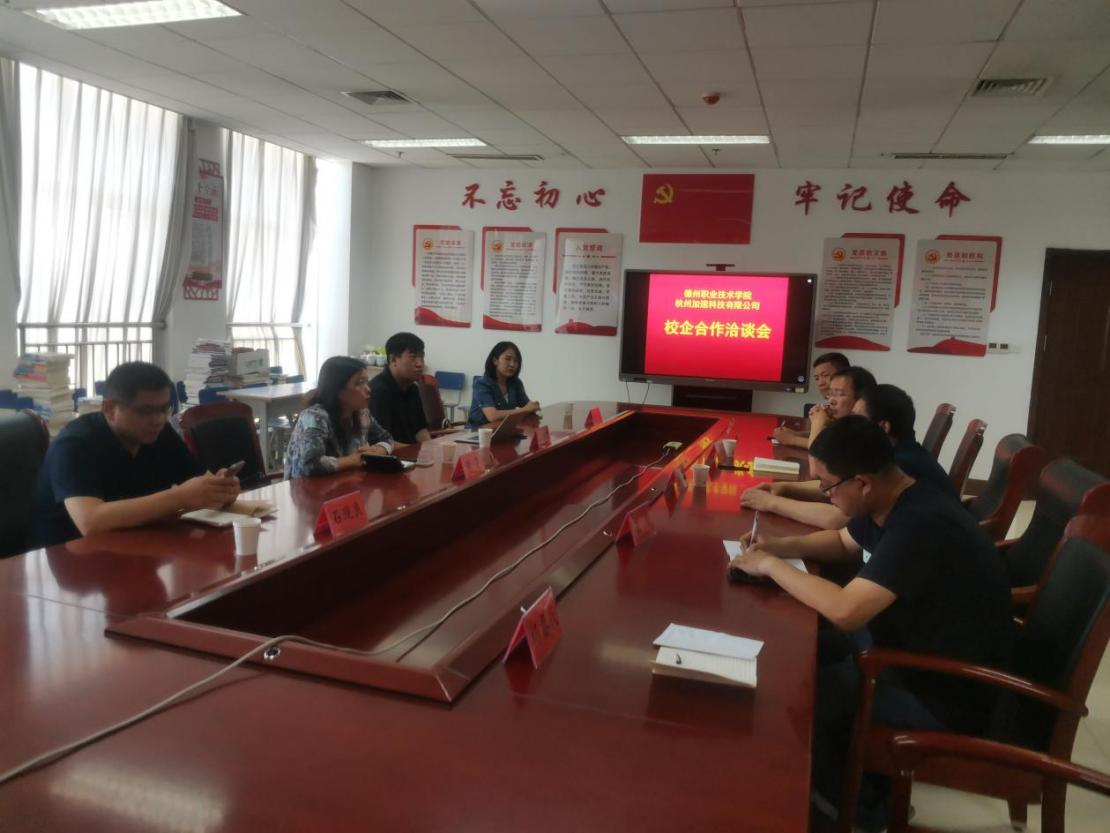 6月25日,杭州加速科技有限公司教育事业部总经理黄雯一行四人来suncitygroup太阳新城访问并商谈校企合作事宜。校党委委员、副院长殷淑英,教务处、电子与新能源技术工程系相关人员参加会议。