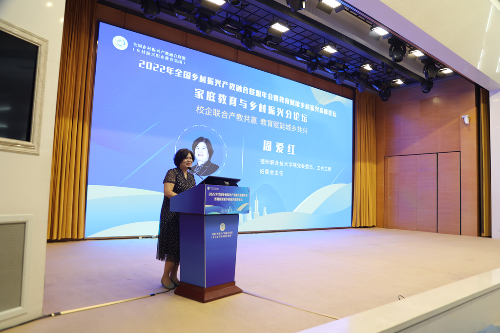 作为联盟副理事长单位,我校党委委员、工会主席周爱红在此次会议中以《校企联合产教共赢教育赋能城乡共兴》为题目,从suncitygroup太阳新城、家庭教育落地实施、立足职业教育助力城乡发展三方面详细汇报了我校关于家庭教育助力乡村振兴的工作做法,得到与会人员的充分肯定。