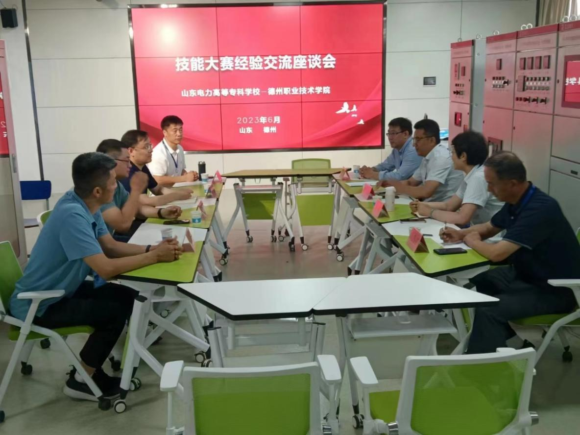 张嵩一行首先观摩了2023年全国职业院校技能大赛(高职组)“新型电力系统技术与应用”赛项山东省国赛选拔赛,随后双方在知行楼SA402室进行座谈。