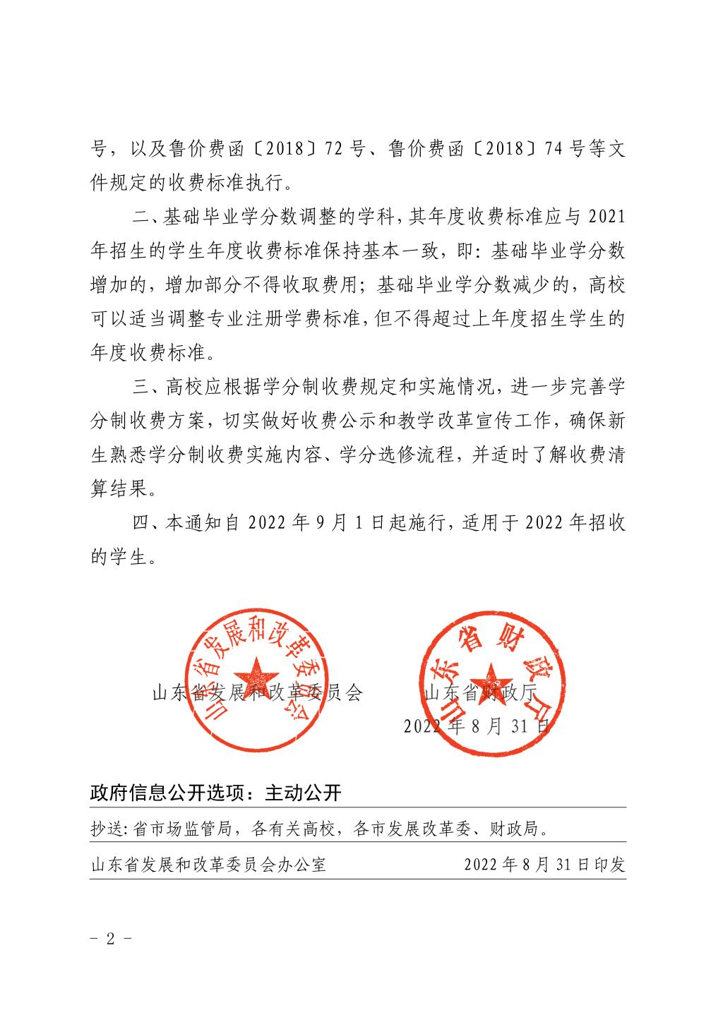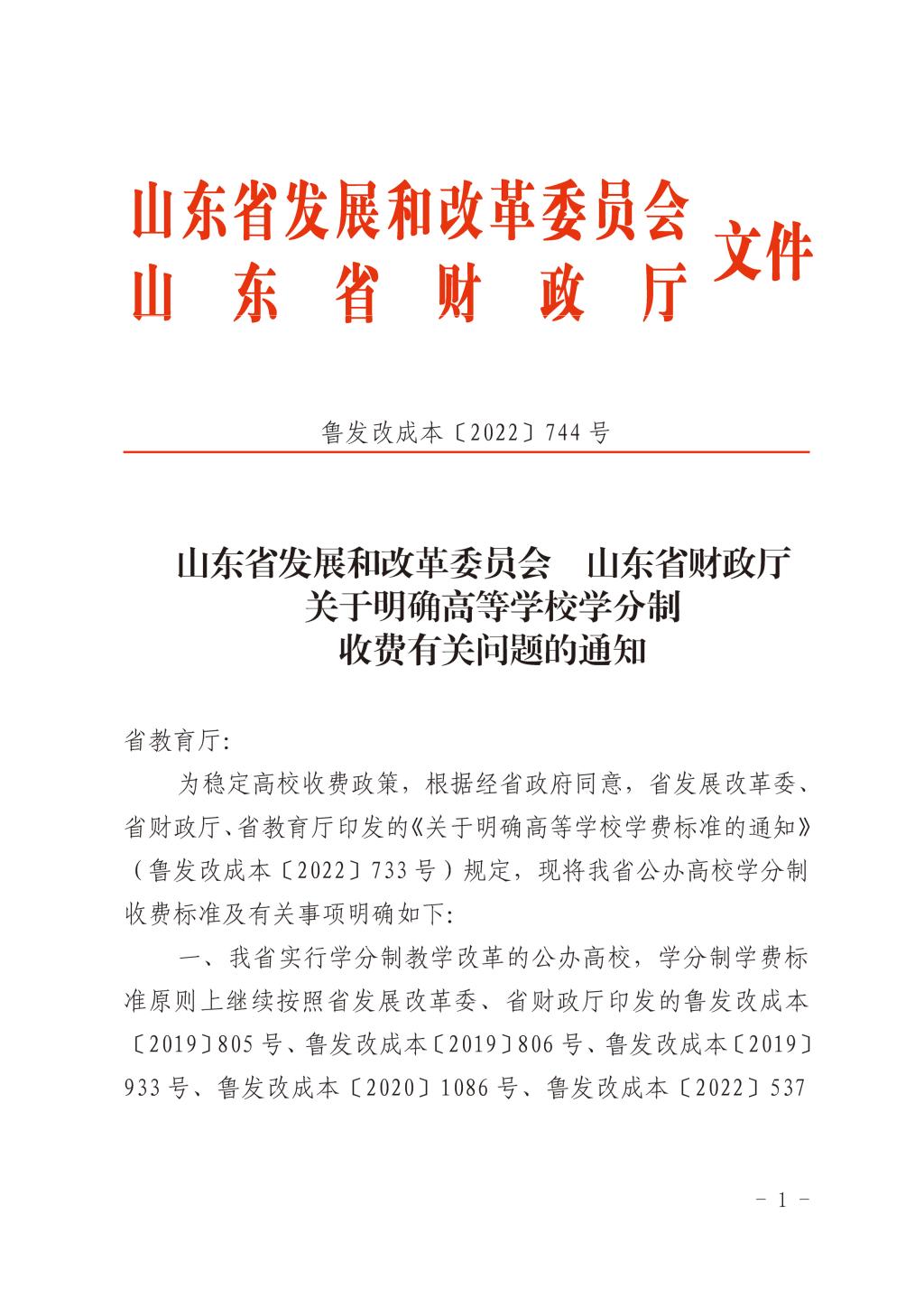 关于明确高等学校学分制收费有关问题的通知(鲁发改成本〔2022〕744号)