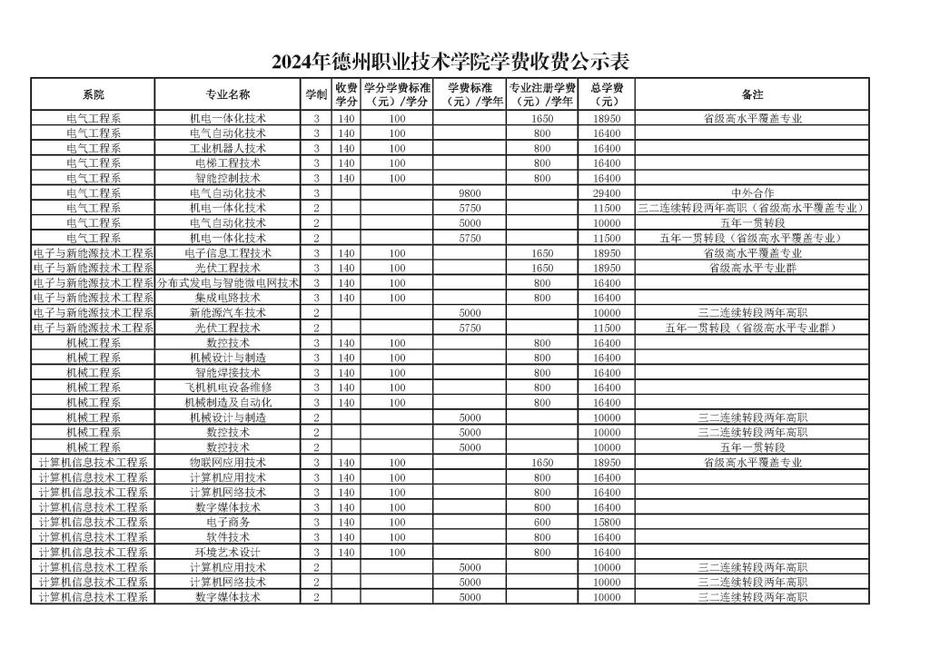 关于山东工艺美术学院等 15 所高等学校 实行学分制收费事项的通知