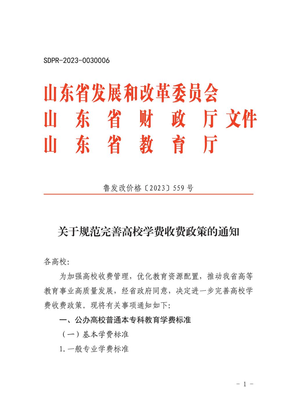 关于规范完善高校学费收费政策的通知(鲁发改价格〔2023〕559号)