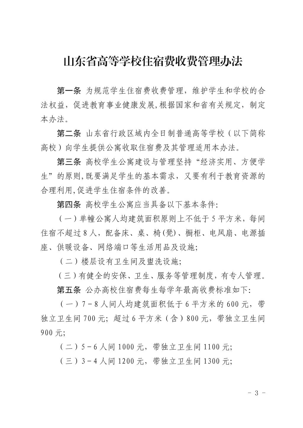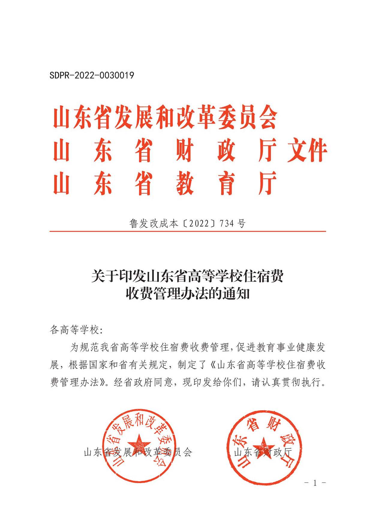 关于印发山东省高等学校住宿费收费管理办法的通知(鲁发改成本〔2022〕734号)