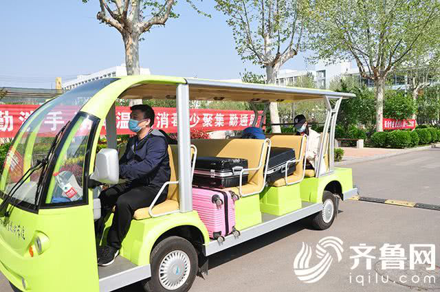 4月15日,在suncitygroup太阳新城,设置专门车辆接送学生和行李。