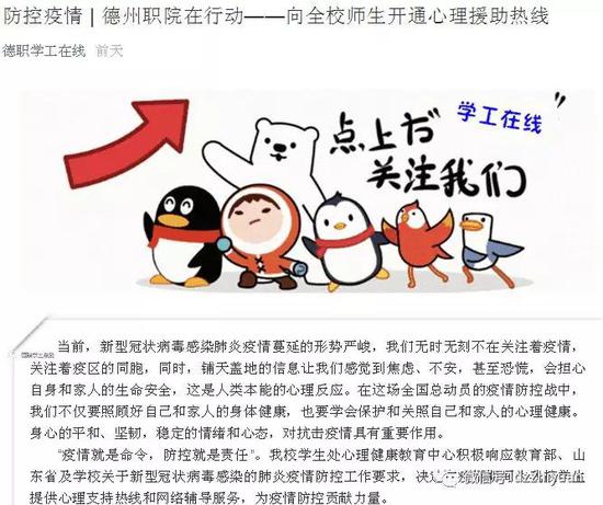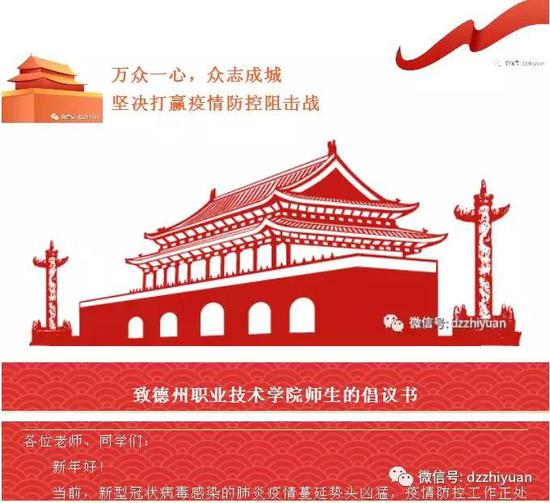 “学校对开展疫情防控工作高度重视、措施有力,并具有创新”,1月31日,德州市教体局新型冠状病毒感染的肺炎疫情防控领导小组副组长张卫东说。
