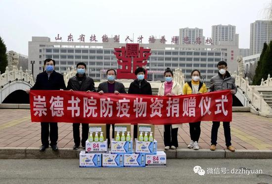 在捐赠现场,田原女士表示,“医疗工作者在前线为我们筑起了安全墙,我们在后方也要积极行动。此次我代表崇德书院向学校捐赠这些防疫用品,主要是想为学生们提供安全的环境,让学生们感受到社会对他们的关爱,安心地学习成才、报效国家”。