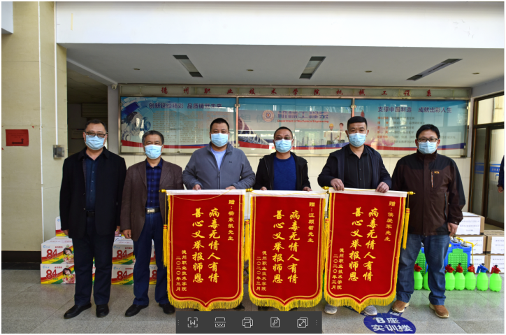 3月23日上午,suncitygroup太阳新城机械工程系1995级毕业生侯爱军,2007级毕业生杨东凯、汪颜哲为支持母校最好疫情防控期间的春季学习复学工作,向母校捐赠防疫物资,我院陈章侠副院长,机械工程系党总支书记徐继勇、主任梁东明、党总支副书记魏传旺、系副主任支保军等负责人参加捐赠仪式。