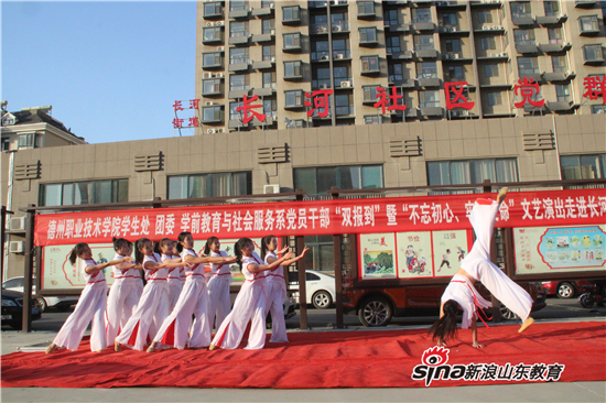 为深入开展“不忘初心、牢记使命”主题教育,扎实推党员“双报到”工作有序进行,丰富社区文化生活,10月29日下午,机关党总支所属党支部学生处团委党支部、学前教育与社会服务系党总支部全体党员干部走进长河社区,开展“双报到”工作,同时为社区群众送去一场精彩的文艺演出。