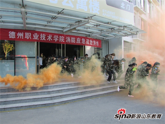 学生处副处长范轶同志宣布演练开始。随着消防警笛的响起,学生宿舍楼门口被浓烟笼罩,同学们在义务消防引导员的指引下,按照正确的逃生姿势,迅速有序的撤离宿舍楼到安全地带,整个疏散演练过程用时不到5分钟。