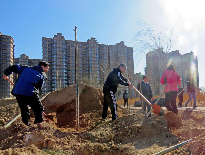 植树现场,党委书记樊兆杰、院长张同光等院领导率先垂范,教职工紧随其后,手拿铁锹,肩扛树苗,挥锹挖土,移栽种植,一起动手绿化自己的家园。大家三五成群,相互协作,从挖坑整地,栽植树苗,到扶正压实,各道工序一丝不苟,整个植树现场呈现一派热火朝天的劳动景象。随着一道道工序有条不紊地完成,一棵棵新苗就稳稳地在土里扎下了根。白腊、国槐、香花槐、法桐……短短一个小时,教职工新栽树苗近800株,为学校校园又新添了一抹亮丽的新绿。