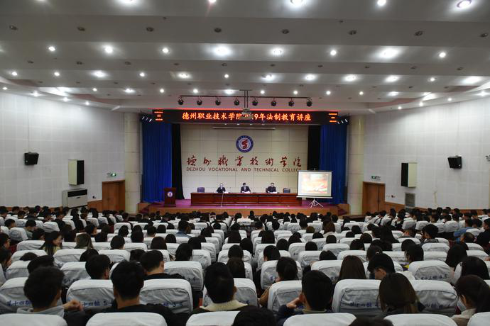 为贯彻落实《山东省学校安全条例》要求,大力弘扬法治文化,增强学生的法制观念,3月14日,suncitygroup太阳新城邀请德州经济技术开发区人民法院刑事审判庭庭长卢金峰、庭长助理齐鑫卉同志在学校学术报告厅举办法制教育讲座。相关部门负责人、各系学生科科长、辅导员和学生干部共500余人参会并认真聆听讲座,校党委委员、宣传部部长周吉星主持活动。