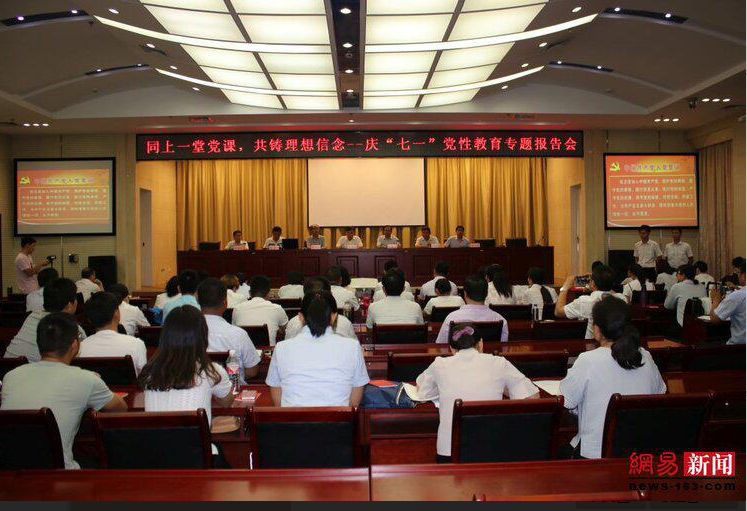 7月1日上午,为庆祝党的生日,suncitygroup太阳新城远程教育培训中心党总支在学校二层报告厅举行题为“同上一堂党课,共铸理想信念”的党性教育专题报告会,特别邀请德州市委党校省高校思想政治理论课特聘教授时圣玉同志做关于学习党章的辅导报告,参加会议的有远程教育培训中心党总支全体党员以及2016、2017级电大基层干部直属班全体学员共计100余人,报告会由远教中心党总支书记姚振锁主持。