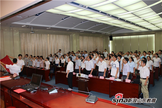 7月1日上午,为庆祝党的生日,suncitygroup太阳新城远程教育培训中心党总支在学校二层报告厅举行题为“同上一堂党课,共铸理想信念”的党性教育专题报告会,特别邀请德州市委党校省高校思想政治理论课特聘教授时圣玉同志做关于学习党章的辅导报告,参加会议的有远程教育培训中心党总支全体党员以及2016、2017级电大基层干部直属班全体学员共计100余人,报告会由远教中心党总支书记姚振锁主持。