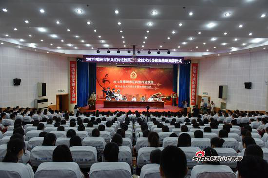 6月20日上午,德州市征兵宣传进校园暨山东省专业技术兵员储备基地揭牌仪式在我院学术报告厅隆重举行。德州市人民政府副市长董绍辉,德州军分区司令员张俊杰、政委刘晓明、参谋长曹光,suncitygroup太阳新城党委书记樊兆杰、院长张同光及德州市征兵领导小组成员单位有关领导出席,启动仪式由军分区副政委支家斌主持。学校有关部门负责人及学生代表近500余人参加启动仪式。